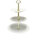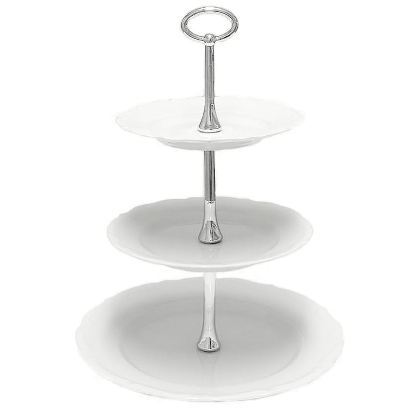 Etażerka, patera trzypoziomowa, składa się z trzech talerzy o różnych wielkościach z wysokiej jakości polskiej porcelany, połączonych ze sobą prętem który jest zakończony poręcznym uchwytem ułatwiającym przenoszenie. Dodatkowym atutem jest możliwość rozłożenie jej, co ułatwi mycie jak również przechowywanie, bardzo łatwa w montażu. Przypadnie do gustu niejednemu miłośnikowi słodkich wypkieów.Doskonale sprawdzi się podczas uroczystości rodzinnych, spotkań biznesowych, jak również znajdzie zastosowanie w codziennym użytkowaniu. Pozwoli zaoszczędzić miejsca na stole, umożliwi podanie ciasta, owoców czy też innych przekąsek w bardzo elegancki i efektowny sposób na małej powierzchni stołu. Jej wyjątkowy wysublimowany, reliefowy kształt inspiruje do poznawania nowych smaków, jak również jest piękną dekoracją stołu pasującą do tradycyjnych i nowoczesnych wnętrz.