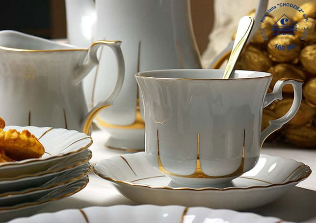 Fason Iwona to legendarny serwis cieszący się niezmiennym powodzeniem od ponad 40- tu lat. Klasyczne reliefowe kształty wyglądają atrakcyjnie zarówno w bogatych, kwiatowych dekoracjach jak i delikatnych, złotych liniach.